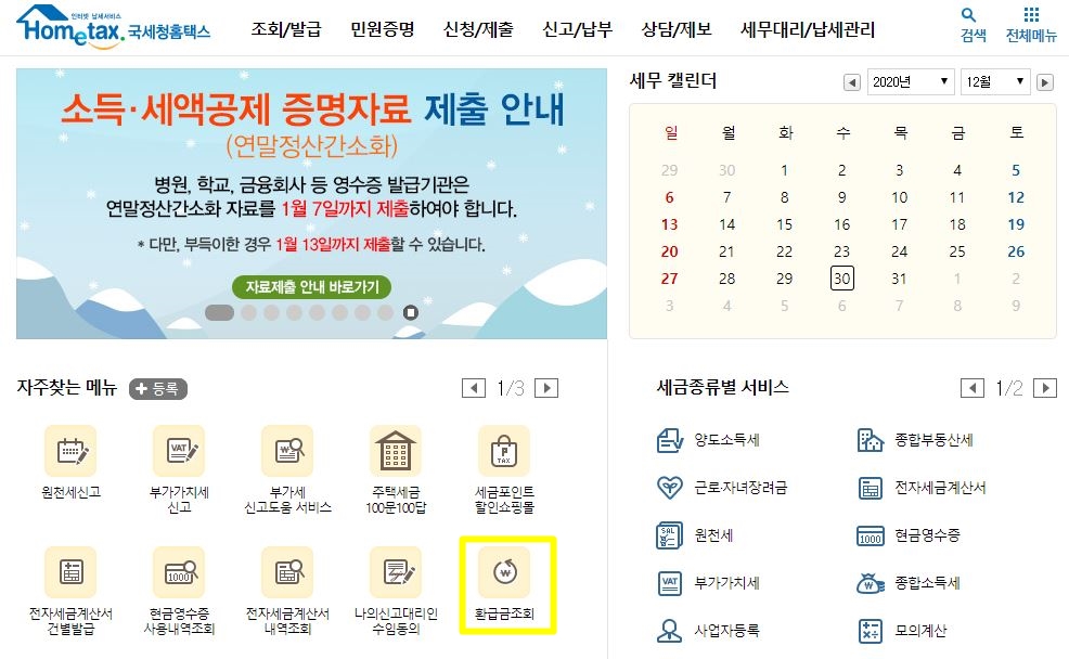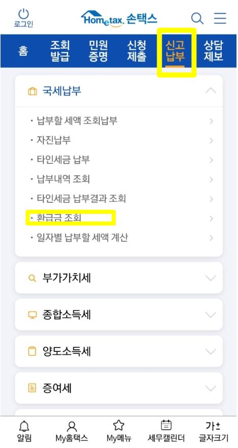 국세환급금 조회하기
